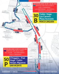Av. Colón revierte sentido de tránsito en sentido sur-norte, entre las calles Ejercito y Puente Perales. De lunes a viernes, en el tramo horario de 18:00 hrs. a 20:00 hrs. Por trabajos en el «Corredor de Transporte Público Colón: Perales- Alessandri».